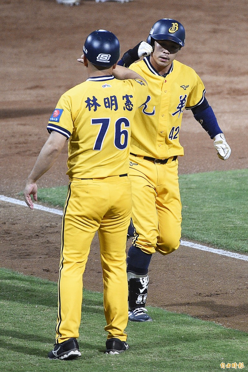 五局上,陳子豪外野飛球,岳東華遭三振,江坤宇一壘安打,陳家駒本場第三支安打,兩人出局一三壘有人。王威晨打擊時,執行雙盜壘戰術,野手刺殺二壘陳家駒,但是三壘江坤宇跑回兄弟第7分。