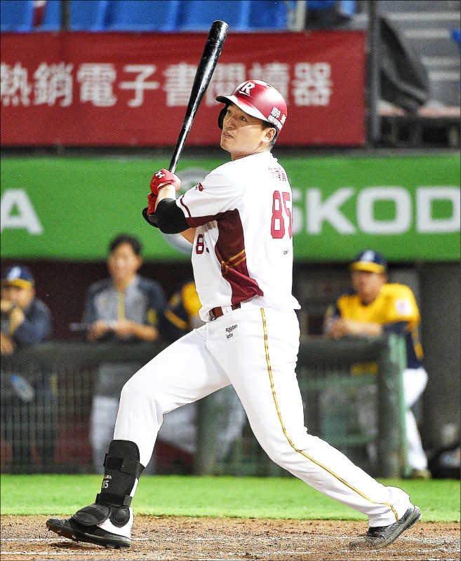 樂天桃猿朱育賢前天達成中職最快10轟,目前高居中職4冠王,火熱表現紅到海外。 (資料照)
